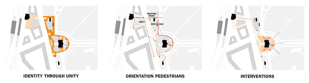 The former allure of the entrance area has mainly disappeared due to urban developments in the last century. Hierarchy and coherence between the car and pedestrian entrances have been diluted and the relationship with the adjacent Ohlsdorf station is unclear to pedestrians.The entrance area will be revitalised by implementing a few simple interventions. A carpet of natural stone pavement gives the area cohesion and a clearly recognizable access area. The entrance for pedestrians will be marked by a square with a distinctive seating element. From there the visitor is led to the entrance area on the site of the cemetery.