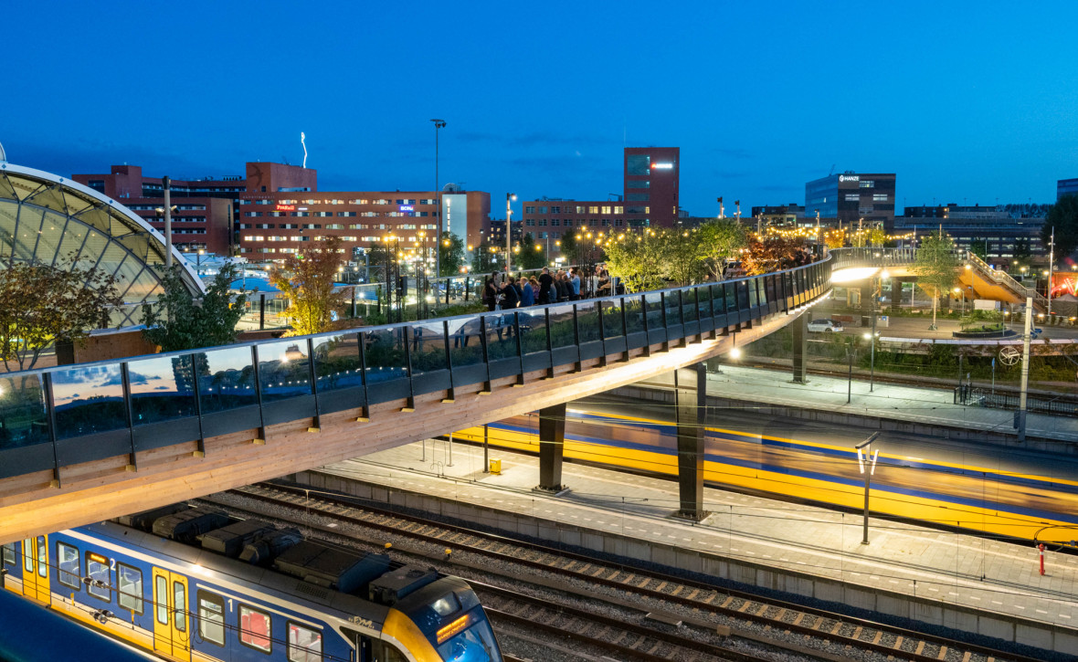 The Passerelle in Zwolle, the wooden cycling and pedestrian bridge over the railway, has won no fewer than three major awards. The bridge received the Cobouw Infra Award 2025, was granted an Honourable Mention by the jury of the National Timber Construction Award 2025, and also won the public prize. This exceptional recognition celebrates both the innovative design and the intensive collaboration between the design team led by Karres en Brands, the Municipality of Zwolle, and Dura Vermeer.