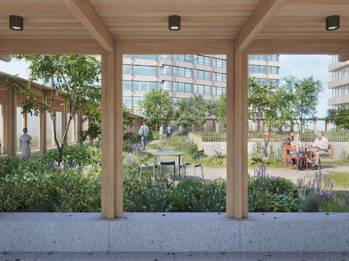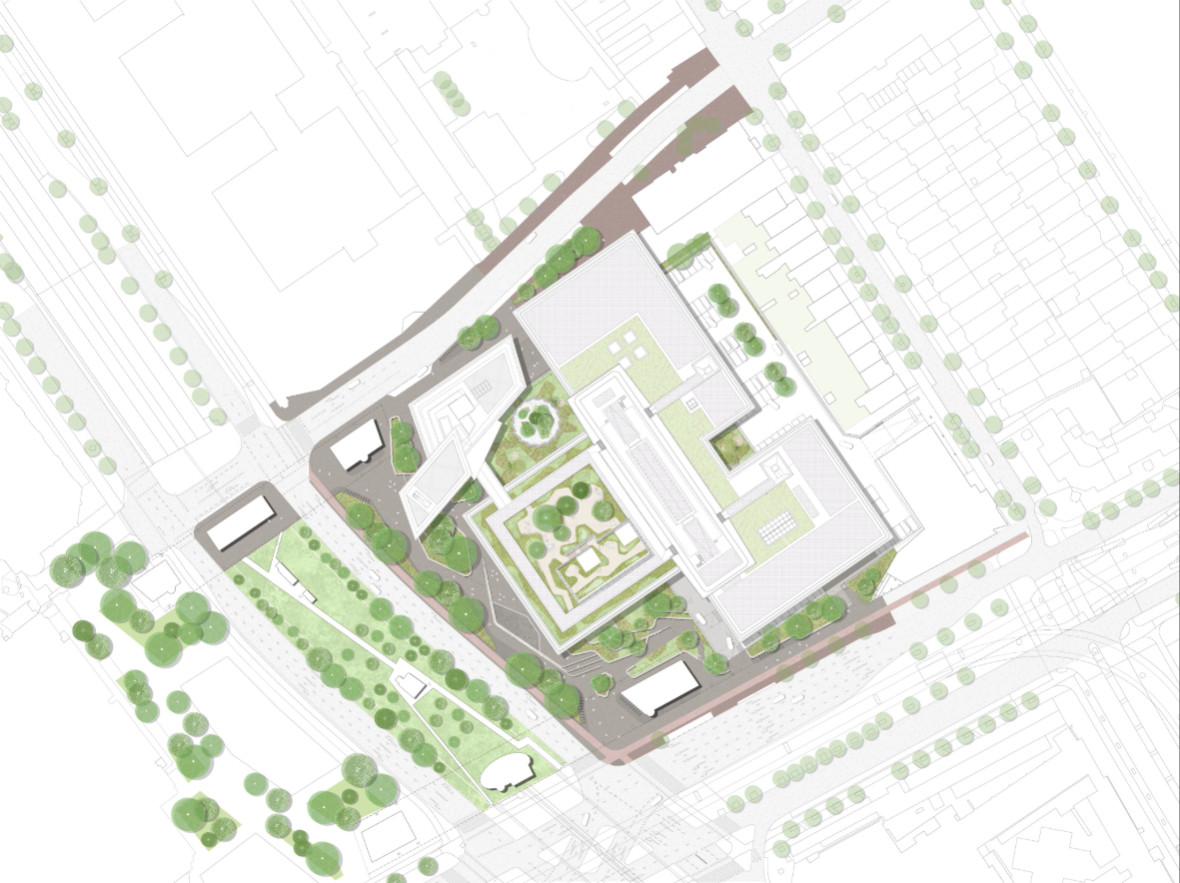 The project aims to green and humanise the existing colossal building. Karres and Brands’ design vision and landscape expertise are being utilised for the greening plan. Greenery plays an essential role in this, both for the (daily) users of the building and for the way in which the complex relates to its urban context. The design explicitly focuses on a stronger relationship with the outdoors, daylight and the seasons, so that the building is no longer perceived as a self-contained volume, but as a place with greater spatial quality and humanity.