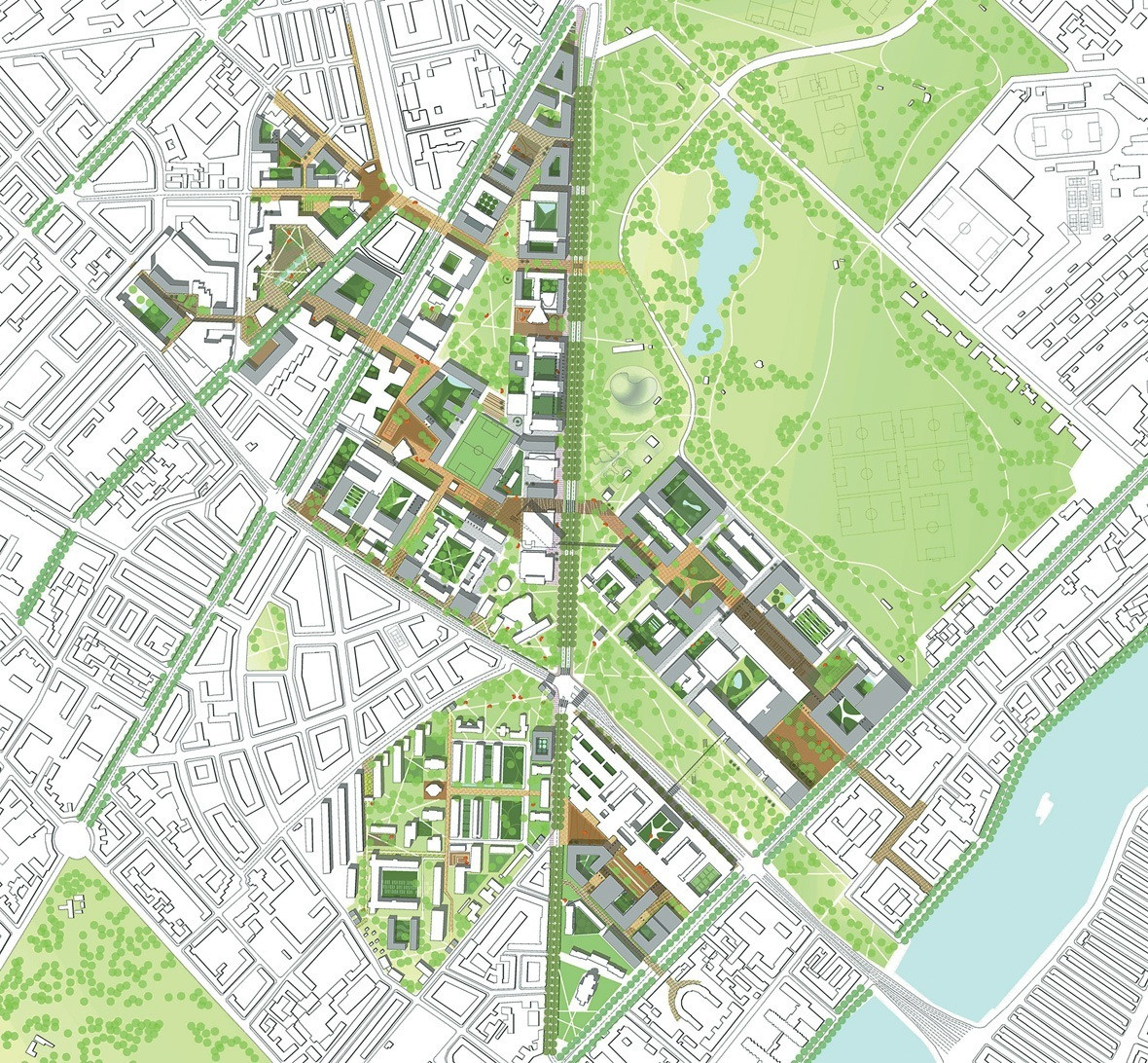 Het concept voor Science City North Campus doelt op een hoge dichtheid van talent, en ruimte voor intensieve interactie tussen mensen. Persoonlijk contact is immers essentieel; vooral door directe interactie ontstaan een creatieve ‘buzz’ en samenwerking, die traditionele conventies kunnen doorbreken. Om dat te bereiken, wordt het gebruik en de kwaliteit van publieke en semi-publieke ruimten geprioriteerd. Het startpunt is daarbij niet het realiseren van mooie gebouwen (hoewel deze wel het resultaat zouden kunnen zijn) maar juist het erkennen van het belang en herbergen van menselijke activiteit en interactie. De focus ligt daarom niet op individuele gebouwen, maar op de publieke ruimte, op de atria, binnenhoven, tuinen, bibliotheken en auditoria. Het team stelt een reeks verschillende, onderling verbonden ruimten voor die geplande en ongeplande interactie tussen studenten, professoren, staf en bewoners van naastgelegen buurten stimuleren. Dit uitgangspunt vormt de basis van een complex project, waar bijzonder flexibele en onconventionele planningsstrategieën de universiteit naar de toekomst kunnen begeleiden.